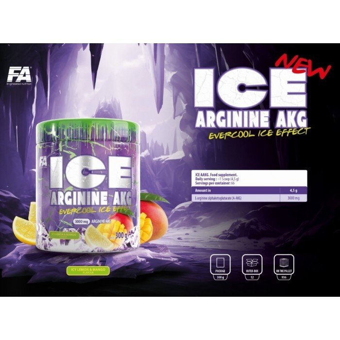 Producto con sabor helado de naranja-mango, que complementa la dieta con L-arginina AKG, recomendado para adultos físicamente activos y deportistas.
